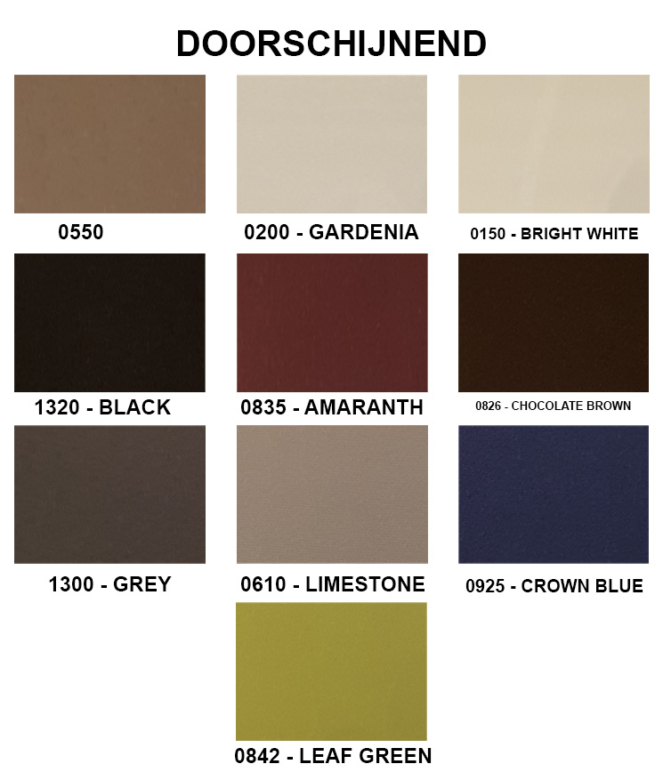 Het KeJe Rolgordijn is leverbaar in de volgende standaard RALkleuren:
