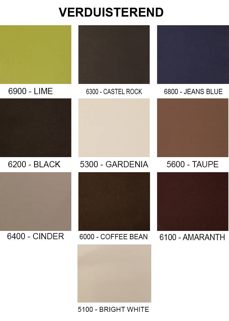 ** DE KLEUREN VAN STOFFEN KUNNEN AFWIJKEN VAN DE WERKELIJKE KLEUREN **